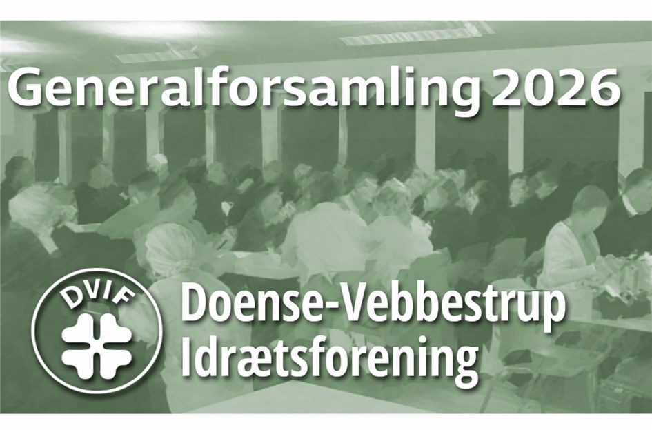 Fredag den 20. februar 2026 afholder Doense-Vebbestrup IF generalforsamling i gildesalen på Tinghøj Idrætscenter. Vores støtteforeninger DI46 og VGF vil samme aften afholde deres generalforsamlinger.